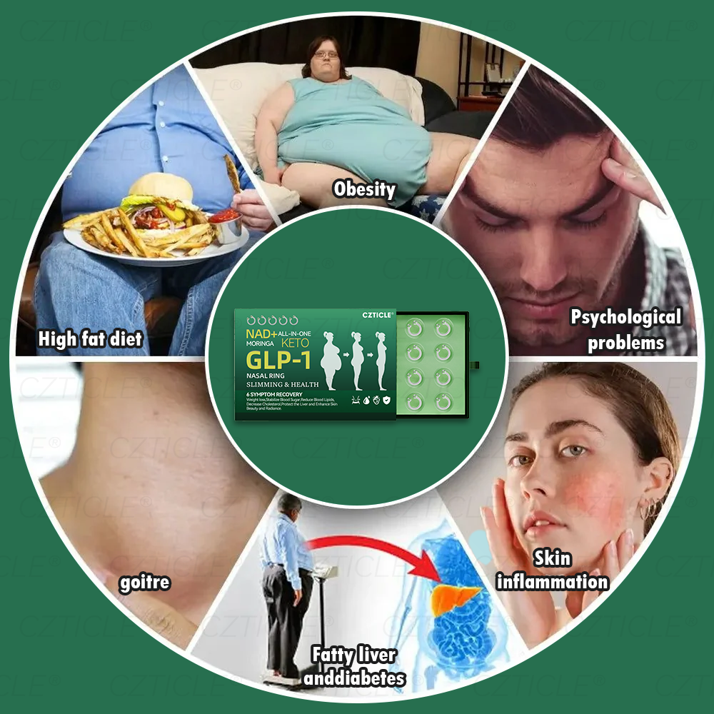 "I suffer from both obesity and diabetes, and I've been getting GLP-1 treatment at the hospital. You might be wondering why I suddenly switched to using the ๐๐๐๐๐๐๐ยฎ ๐๐๐-๐ ๐๐ฅ๐ข๐ฆ๐ฆ๐ข๐ง๐ &ย ๐๐๐๐ฅ๐ญ๐ก ๐๐๐ฌ๐๐ฅ ๐๐ข๐ง๐ . GLP-1, a naturally occurring hormone that helps regulate blood sugar, is definitely a great treatment. It works really fastโjust a short time after used, my appetite dropped, I lost weight quickly, and my blood sugar went down. But, as we all know, it's tough to break old habits. On my scheduled injection days, I'd come up with all sorts of excuses to skip, which led to failed treatments. The cost, hunger, time conflicts, or even something as simple as it raining outside would keep me from going. But the GLP-1 Slimming & Health Nasal Ring are perfect for someone like me who struggles with inertia. I can use it easily at home, and the effects last, keeping my appetite in check. What's even better is that it's really affordable, and anyone can use GLP-1 to help lose weight and keep their blood sugar in check!